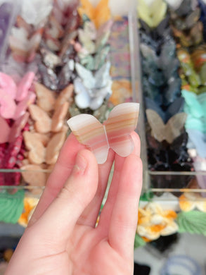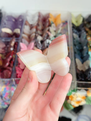 Mini Pink Banded Calcite Butterfly